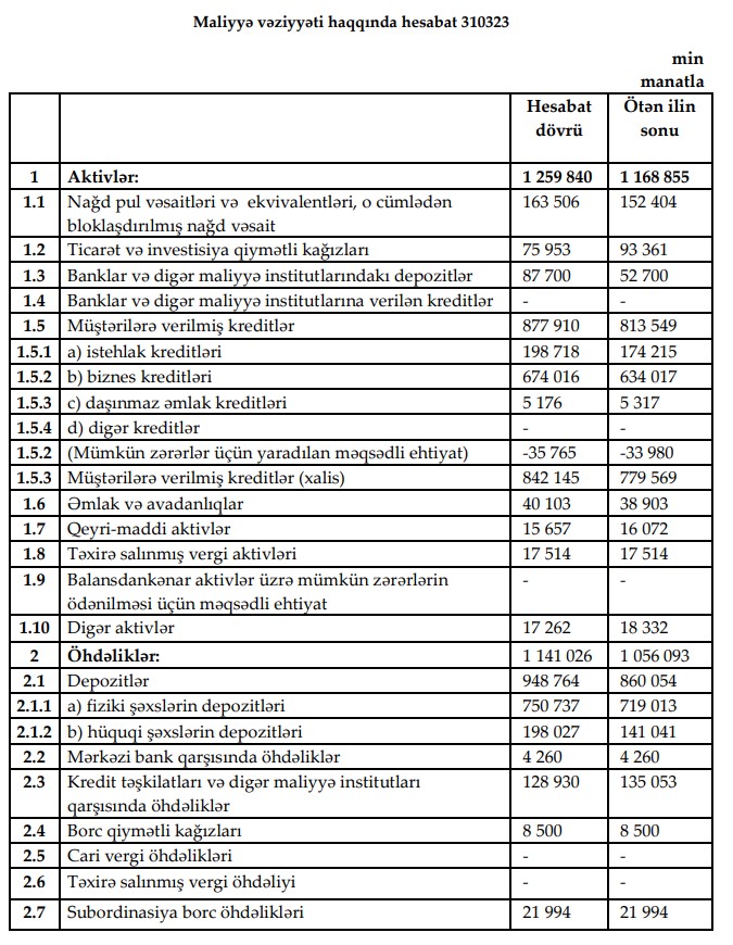 Bütövlükdə, Bankın aktivləri rüb ərzində 7.8% artaraq, hesabat dövrünün sonunda 1.3 milyard manata çatıb.