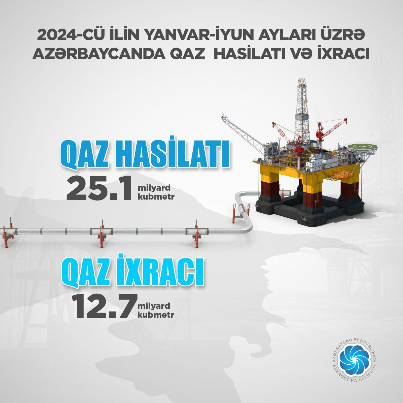 Nazir qeyd edib ki, bu dövrdə ötən ilin I yarımili ilə müqayisədə 4,3% artımla hasil edilmiş 25,1 mlrd.m3 qazın 12,7 mlrd.m3-i ixrac olunub.