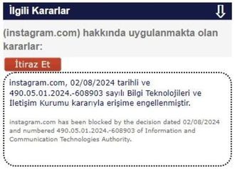 Türkiyənin İnformasiya Texnologiyaları və Rabitə Təşkilatının (BTK - Bilgi Teknolojileri ve İletişim Kurumu) qərarı ilə ölkədə İnstagram-a giriş bloklanıb.