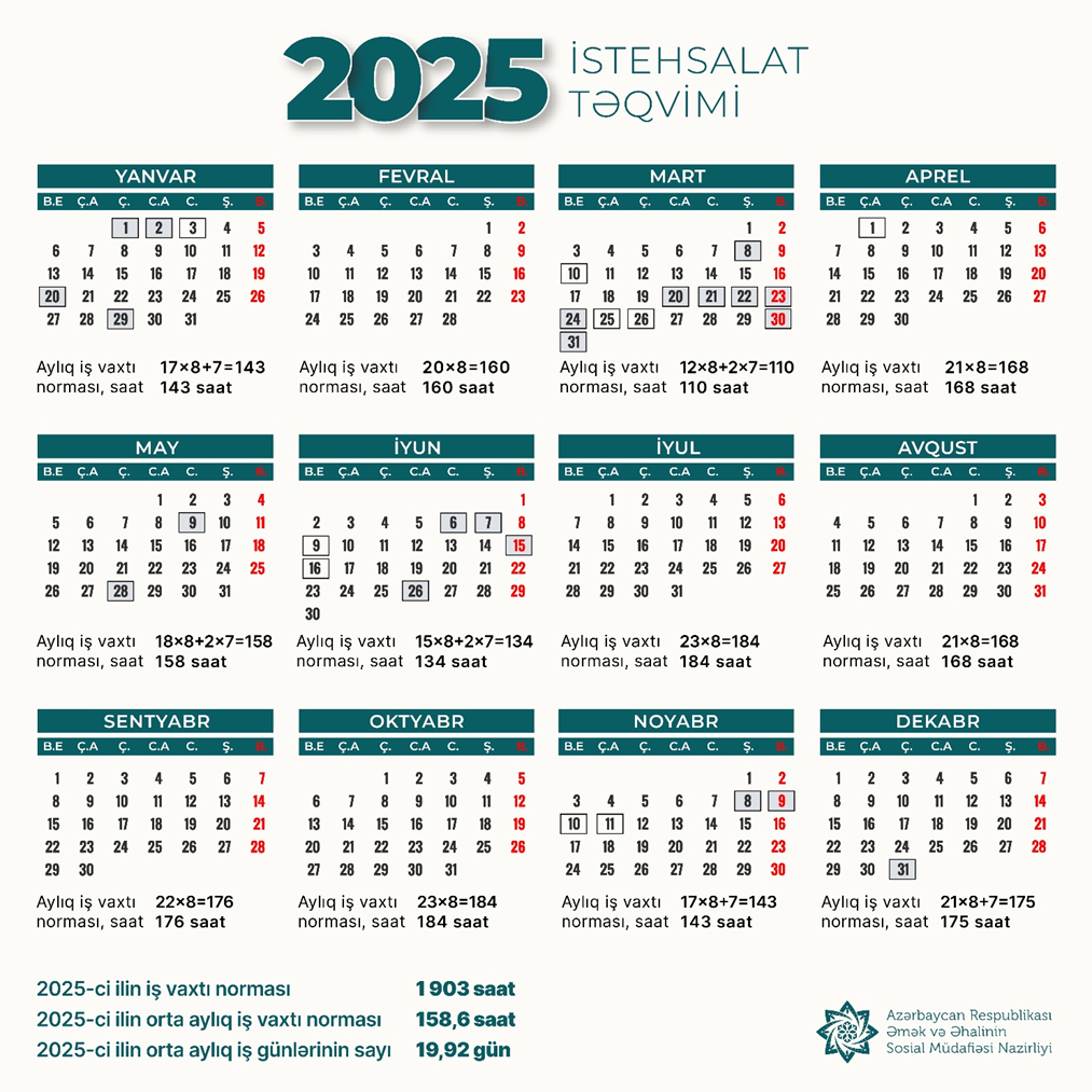 2025-ci il üçün iş vaxtı norması və istehsalat təqvimi təsdiq edildi - QEYRİ-İŞ GÜNLƏRİ