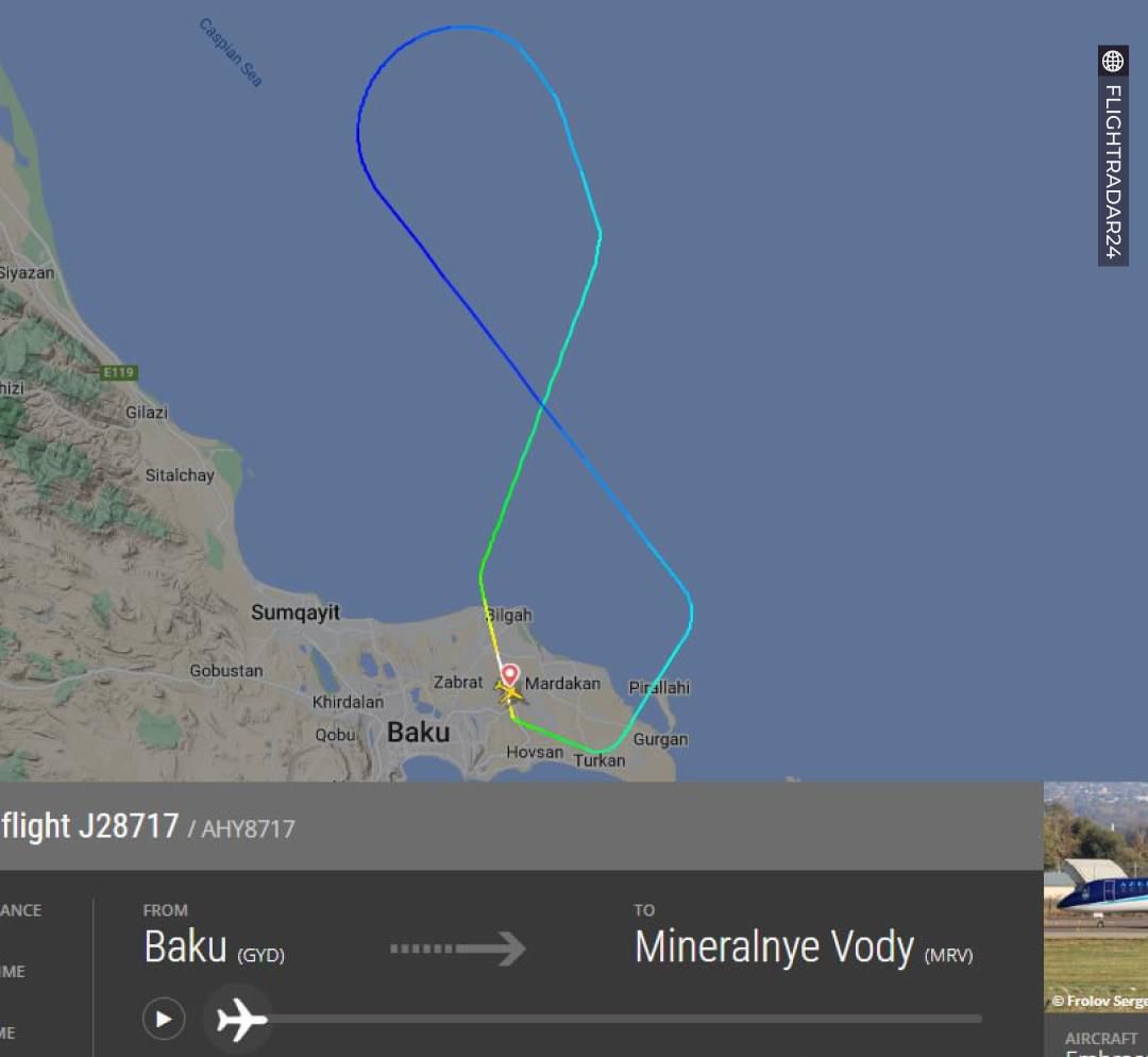 “Azərbaycan Hava Yolları” (AZAL) aviaşirkətinin J2-8717 nömrəli Bakı-Mineralnıye Vodı reysini yerinə yetirən təyyarəsinin kapitanı havaya qalxandan və Mahaçqala üzərində hava məkanının bağlı olması barədə NOTAM (uçuş məlumatı) bildirişi alandan dərhal sonra Bakı hava məkanından çıxmadan geri qayıdıb.