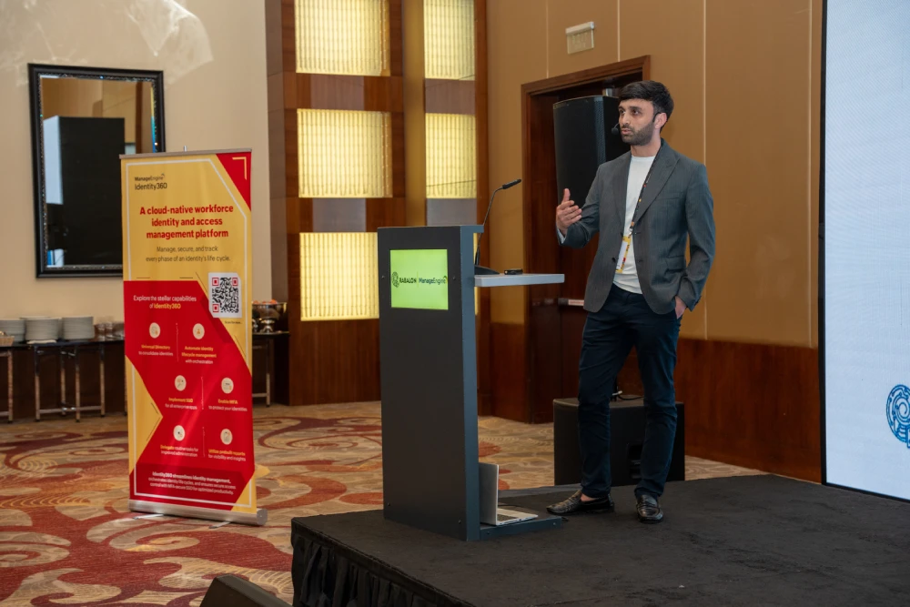 Spiker kimi çıxış edən ManageEngine mütəxəssisi Abhilash Mamidela, AD360/ID360 və Log360 həlləri çərçivəsində korporativ kimliklərin idarə olunması və daxili təhlükəsizlik risklərinin azaldılması mövzusunda təqdimatla çıxış edib.