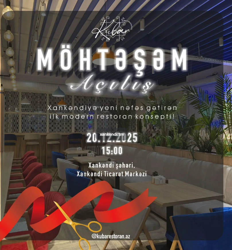 20 dekabr 2025-ci il tarixində Xankəndidə "Kübar" adlı restoran fəaliyyətə başlayacaq.