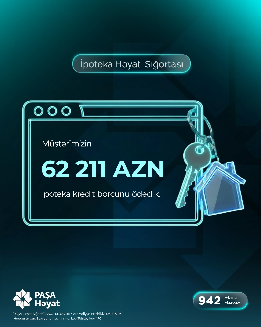 Müştərinin 62 min 211 manat qalıq kredit borcu məbləği “PAŞA Həyat” tərəfindən ödənilib