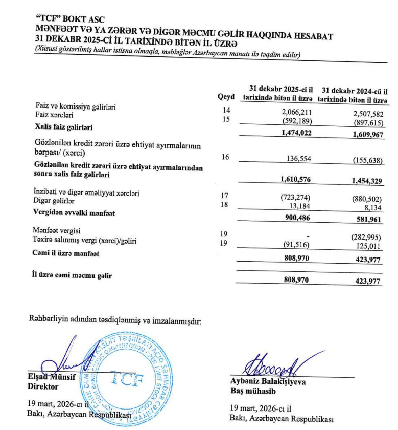 TFCBOKT TFCBOKTASC xalismənfəət2025 TFCxalisgəlir TFC2025mənfəətartımı AzərbaycanBOKTsektoru TFCfaizvəkomissiyagəlirləri TFCkreditportfeli TFCportfelazalması BOKTmaliyyənəticələri Azərbaycanmikromaliyyə TFC2024gəlirlər TFC2025gəlirlər TFCəməliyyatxərcləri TFCehtiyatayırmaları TFCnizamnaməkapitalı BakuElectronicsMMC TFCBOKTtarixi BOKTxəbərlər Azərbaycanbankolmayankredittəşkilatı