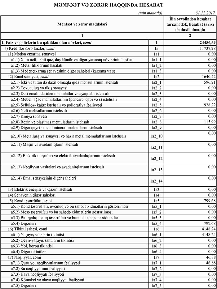 Faiz və qeyri-faiz xərcləri çıxıldıqdan sonra Bankın 6 milyon 693 min manat əməliyyat mənfəəti qalıb. 2016-cı ildə bankın əməliyyat mənfəəti 8 milyon 344 min manat təşkil etmişdi. 2017-ci ilin əməliyyat mənfəəti 2016-cı illə müqayisədə az olsa da, ehtiyatlara ayırma aşağı düşdüyündən xalis mənfəət bu il daha çox olub.