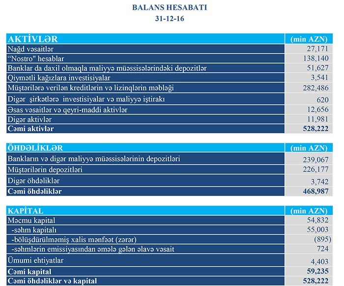 Bank 2015-cı ildə 1 milyon 132 min manat zərər açıqlamışdı.
