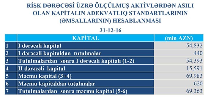 "TuranBank"ın cəmi balans kapitalı 2016-cı ildəki 59 milyon 235 min manatdan 58 milyon 970 min manata geriləyib.Bankın məcmu kapitalı isə 69 milyon 363 min manatdan 68 milyon 623 min manata düşüb.