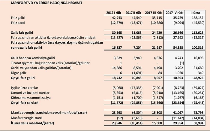 Azərbaycanın iri bankı 59 milyon manat xalis mənfəət açıqladı