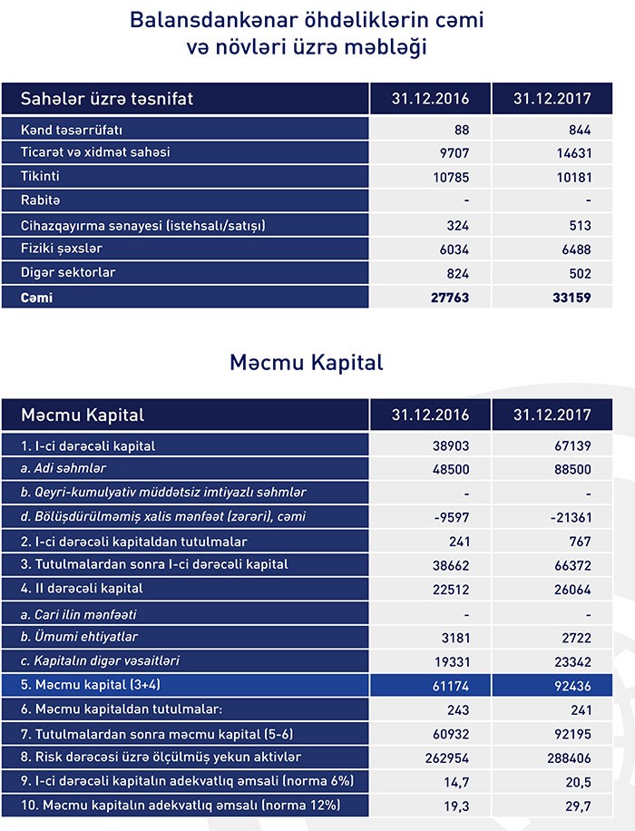 Ötən il Bankın məcmu kapitalı 31 milyon 262 min manat artaraq 92 milyon 436 min manata çatıb. Məcmu kapitalın artmasının səbəbi nizamnamə kapitalının 48,5 milyon manatdan 88,5 milyon manata yüksəlməsidir.