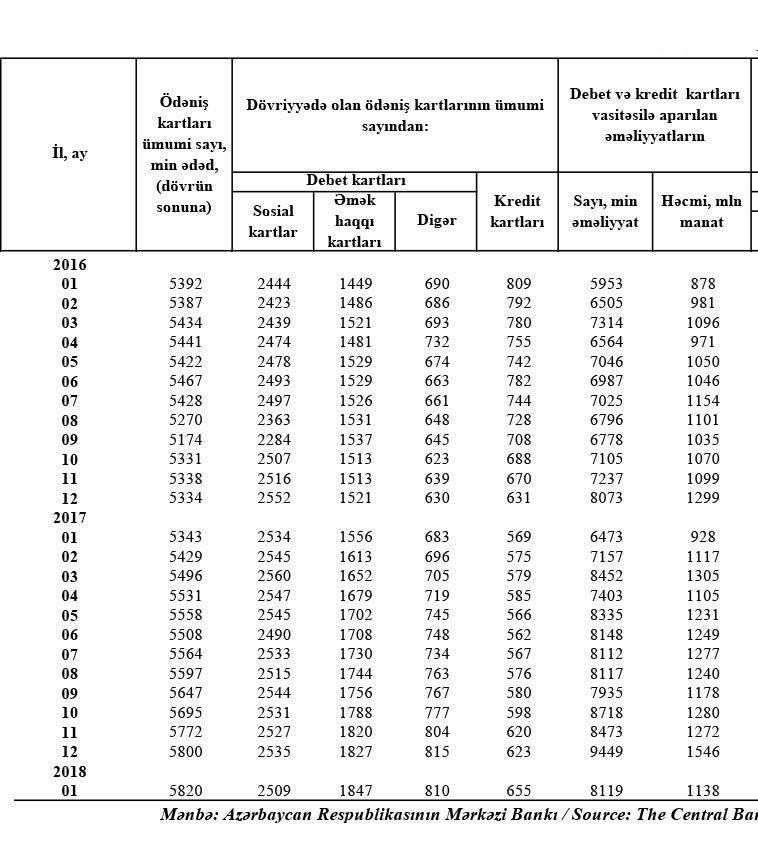 Son 2 ildə əməkhaqqı katlarının sayı 398 min ədəd artıb. 2016-cı ilin Yanvarında əməkhaqqı kartlarının sayı 1 milyon 449 min ədəd idi. Son 2 ildə cəmi ödəniş kartları 428 min ədəd artıb.