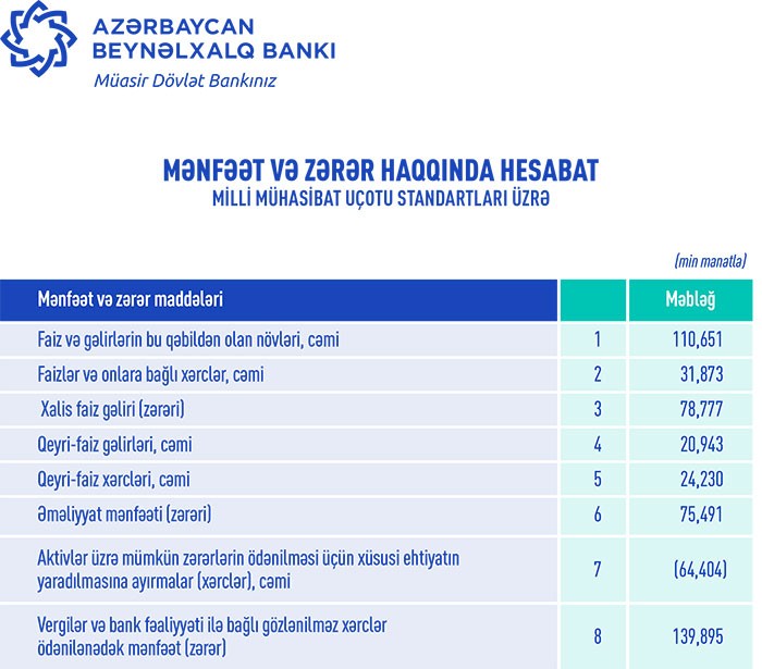 “Azərbaycan Beynəlxalq Bankı” ASC 2018-ci ilin 1-ci rübü üzrə maliyyə göstəricilərini açıqlayıb.