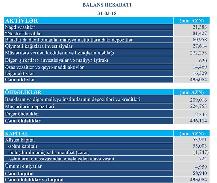 “TuranBank” ASC 2018-ci ilin 1-ci rübünə dair maliyyə göstəricilərini açıqlayıb.