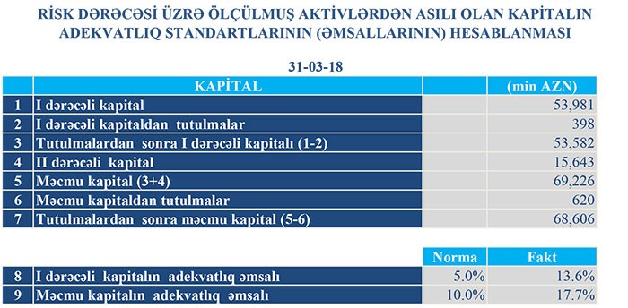 31 Mart 2018-ci il tarixində “TuranBank” 68 milyon 606 min manat məcmu kapitala malik olub.