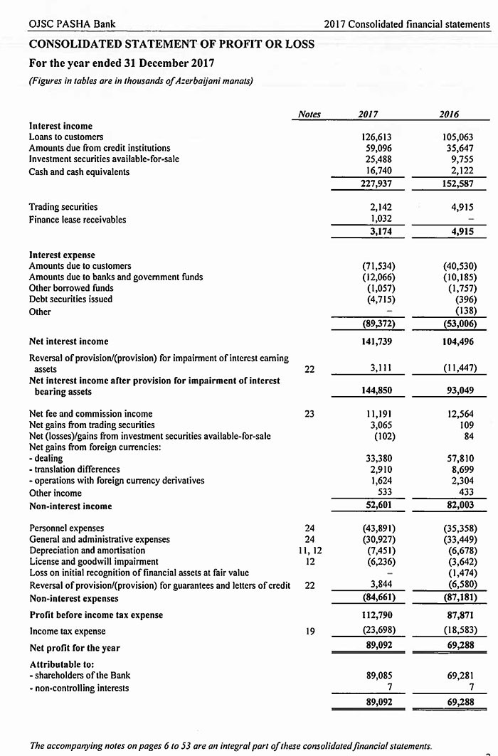 2016-cı ildə vergidən əvvəl 87 milyon 871 min manat mənfəət əldə etmiş PAŞA Bank, ötən il 112 milyon 790 min manat vergidən əvvəl mənfəət əldə edib. Bu mənfəətdən 23 milyon 698 min manat mənfəət vergisi ödənilib.