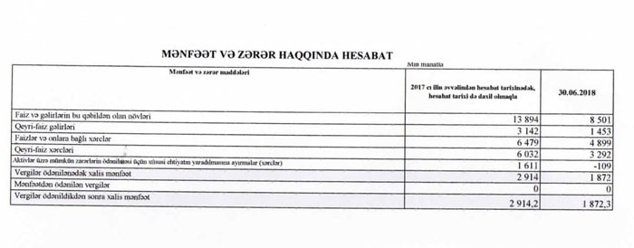 “NBC Bank” ASC 2018-ci ilin birinci yarısını 1 milyon 872 min manat xalis mənfəətlə başa vurub.