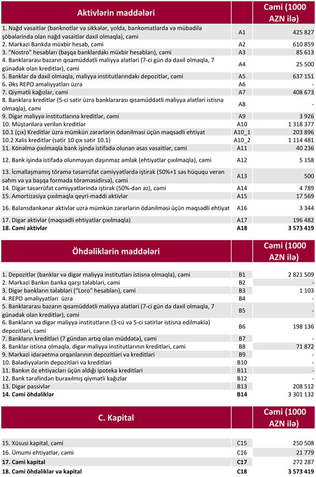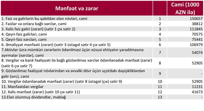 Bank 2018-ci ilin 1-ci rübündə 22 milyon 262 min manat, 2-ci rübündə isə 19 milyon 411 min manat xalis mənfəət əldə edib.