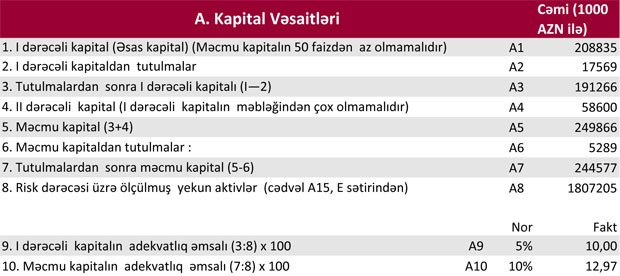 Bank 6 ay ərzində aktivlər üzrə mümkün zərərlərin ödənilməsi üçün xüsusi ehtiyatın yaradılmasına 54 milyon 74 min manat ayırıb. Ötən ilin 6 ayında bu məbləğ 27 milyon 261 min manat təşkil etmişdi.