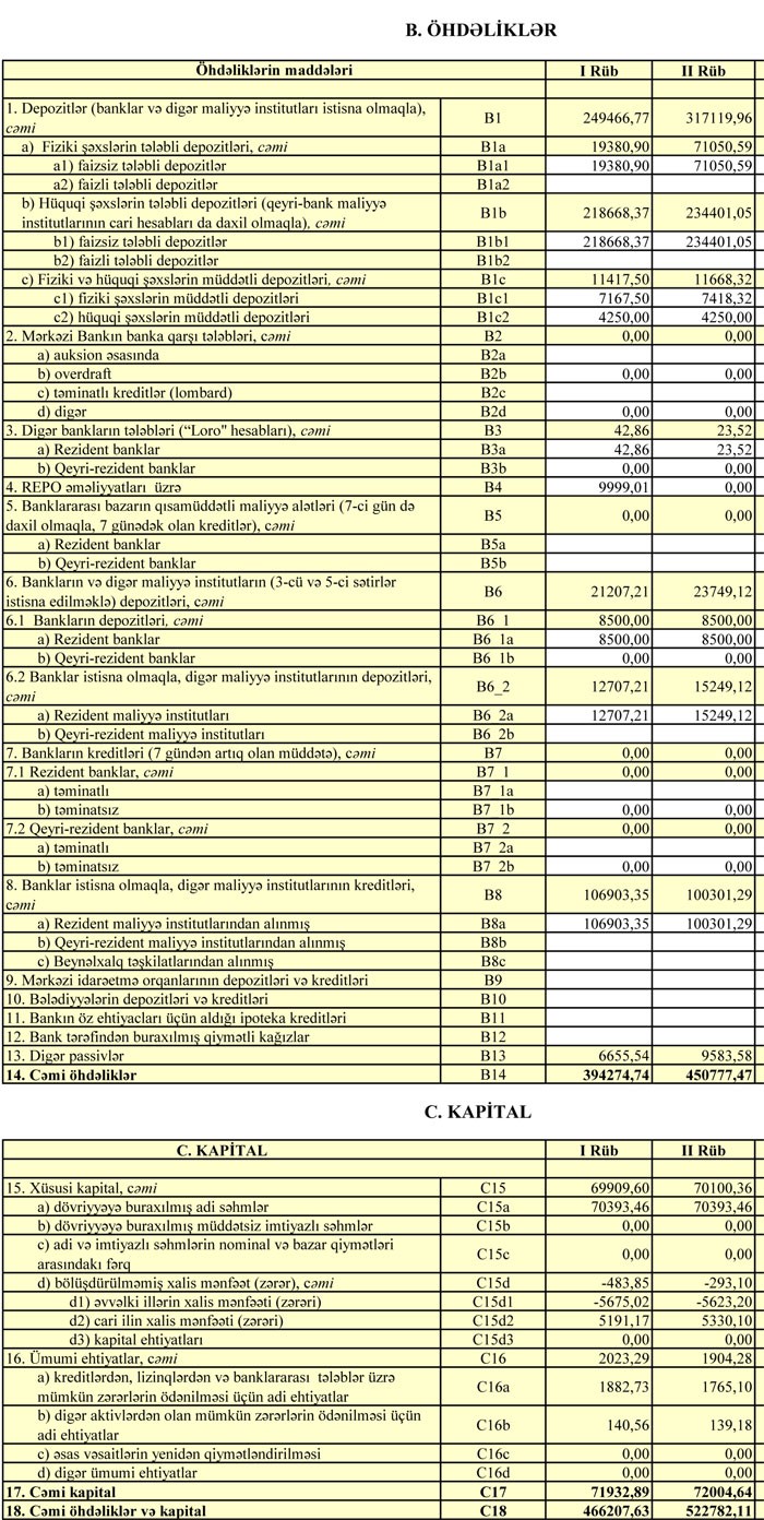 “Marja” Bankın maliyyə hesabatlarına istinadən xəbər verir ki, 2018-ci ilin birinci yarısında Bankın faiz gəlirləri 18 milyon 950 min manat, qeyri-faiz gəlirləri 4 milyon 991 min manat təşkil edib. Faiz və qeyri-faiz xərcləri çıxıldıqdan sonra 12 milyon 892 min manat əməliyyat mənfəəti qalıb. Əməliyyat mənfəətinin 7 milyon 561 min manatı ehtiyata yönəldilib. Nəticədə Bank 2018-ci ilinin birinci yarısını 5 milyon 330 min manat xalis mənfəətlə başa vurub.