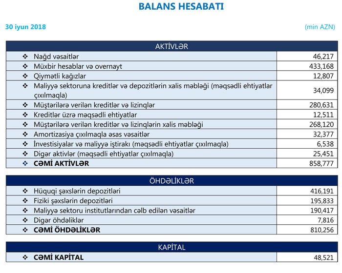 Cəmi xərclər gəlirlərdən çıxıldıqdan sonra Bankın 2 milyon 809 min manat əməliyyat mənfəəti yaranıb. Ötən ilin birinci yarısında Bankın əməliyyat mənfəəti 4 milyon 759 min manat təşkil etmişdi.