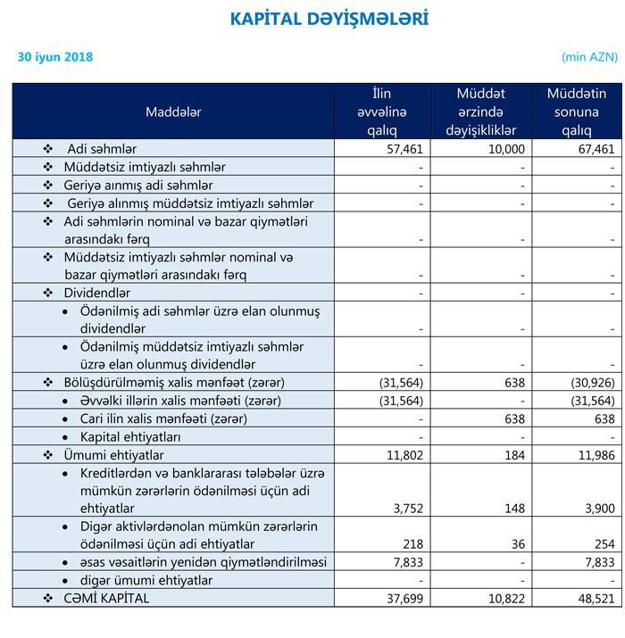 “Bank Respublika” 2018-ci ilin birinci yarısında aktivlər üzrə mümkün zərərlərin ödənilməsi üçün xüsusi ehtiyatın yaradılmasına 2 milyon 171 min manat da ayırıb. Nəticədə Bankın mənfəəti 638 min manata düşüb. Müqayisə üçün qeyd edək ki, Bank 2017-ci ilin birinci yarısında ehtiyatlara 5 milyon 342 min manat ayırmışdı.