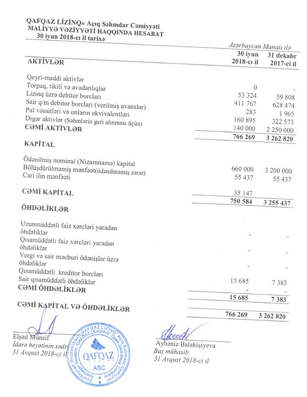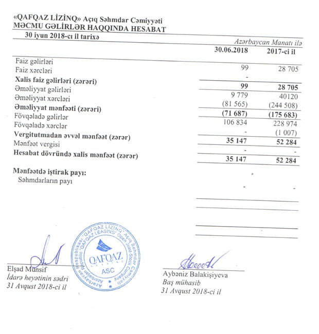 “Qafqaz Lizinq” ASC 2018-ci ilin birinci yarısını 35 min 147 manat xalis mənfəətlə başa vurub.