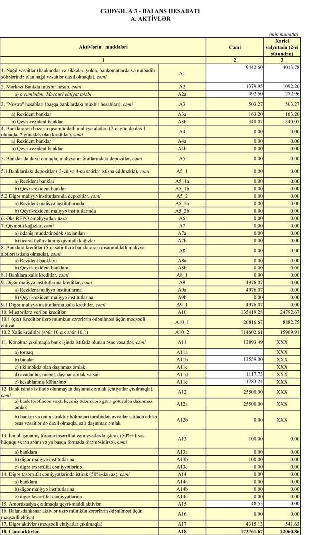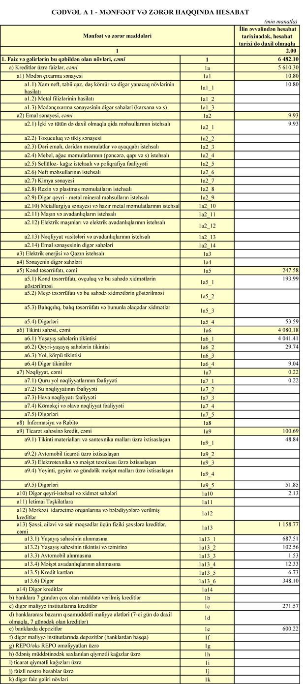 Bankın müştərilərə verdiyi kreditlər ötən ilin Sentyabr ayının sonundakı 131 milyon 387 min manatdan 135 milyon 419 min manata çatıb.