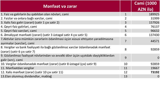 Azərbaycanın iri bankının xalis mənfəəti kəskin artıb