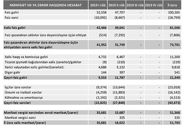 2019-cu ilin 1-ci yarısında “PAŞA Bank”ın cəmi gəlirləri 121 milyon 605 min manat, cəmi xərcləri isə 70 milyon 238 min manat təşkil edib. Xərclər xaric bankın 51 milyon 368 min manat mənfəət vergisi xərcindən əvvəl mənfəəti formalaşıb. Bank 335 min manat mənfəət vergisi ödəyib. Nəticədə Bank cari ilin birinci yarısını 51 milyon 703 min manat xalis mənfəət ilə bağlayıb.