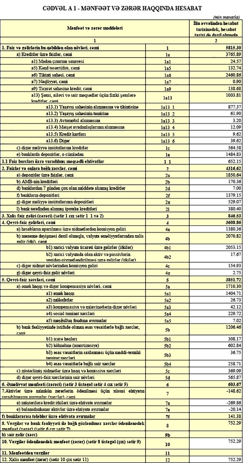 BANK BÖYÜYÜB, MÜŞTƏRİLƏRƏ VERİLƏN KREDİTLƏR ARTIB
