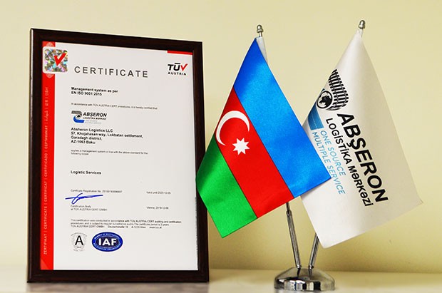 Abşeron Logistika Mərkəzi ISO 9001:2015 beynəlxalq “Keyfiyyət İdarəetmə Sistemi” sertifikatına layiq görülüb.
