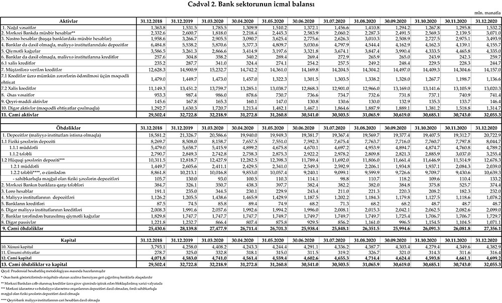 31 dekabr 2020-ci il tarixinə olan bank sektorunun əsas göstəriciləri açılqanıb.