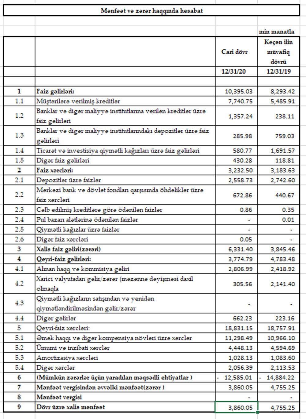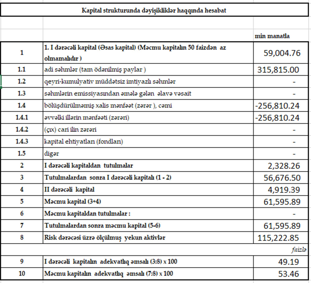 Ötən ilin xalis mənfəətin hesabına Bankın yığılmış zərəri 256 milyon 810 min manatdan 252 milyon 950 min manata düşüb.