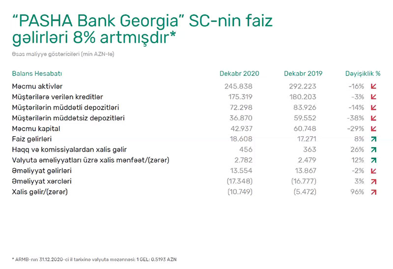 Bəhruz Nağıyev qeyd edib ki, PAŞA Bank Gürcüstan 2020-ci ili 10 milyon 749 min manat xalis zərər ilə, PAŞA Bank Türkiyə isə ötən ili 7 milyon 651 min manat xalis mənfəət ilə bağlayıb.