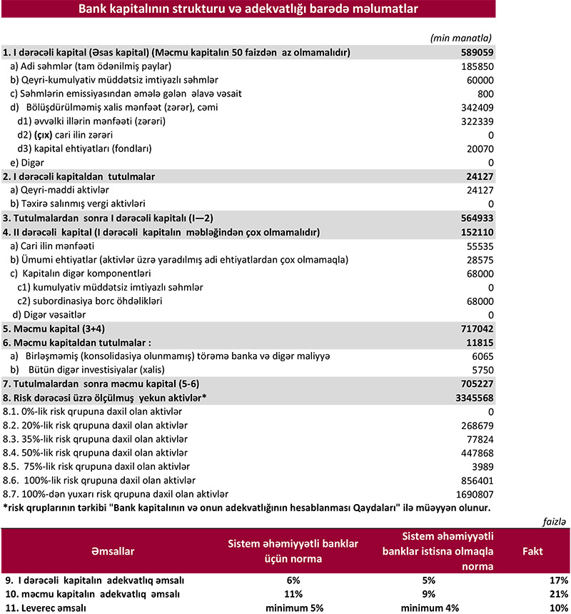 31 Mart 2021-ci il tarixində Kapital Bank 705 milyon 227 min manat məcmu kapitala malik olub.