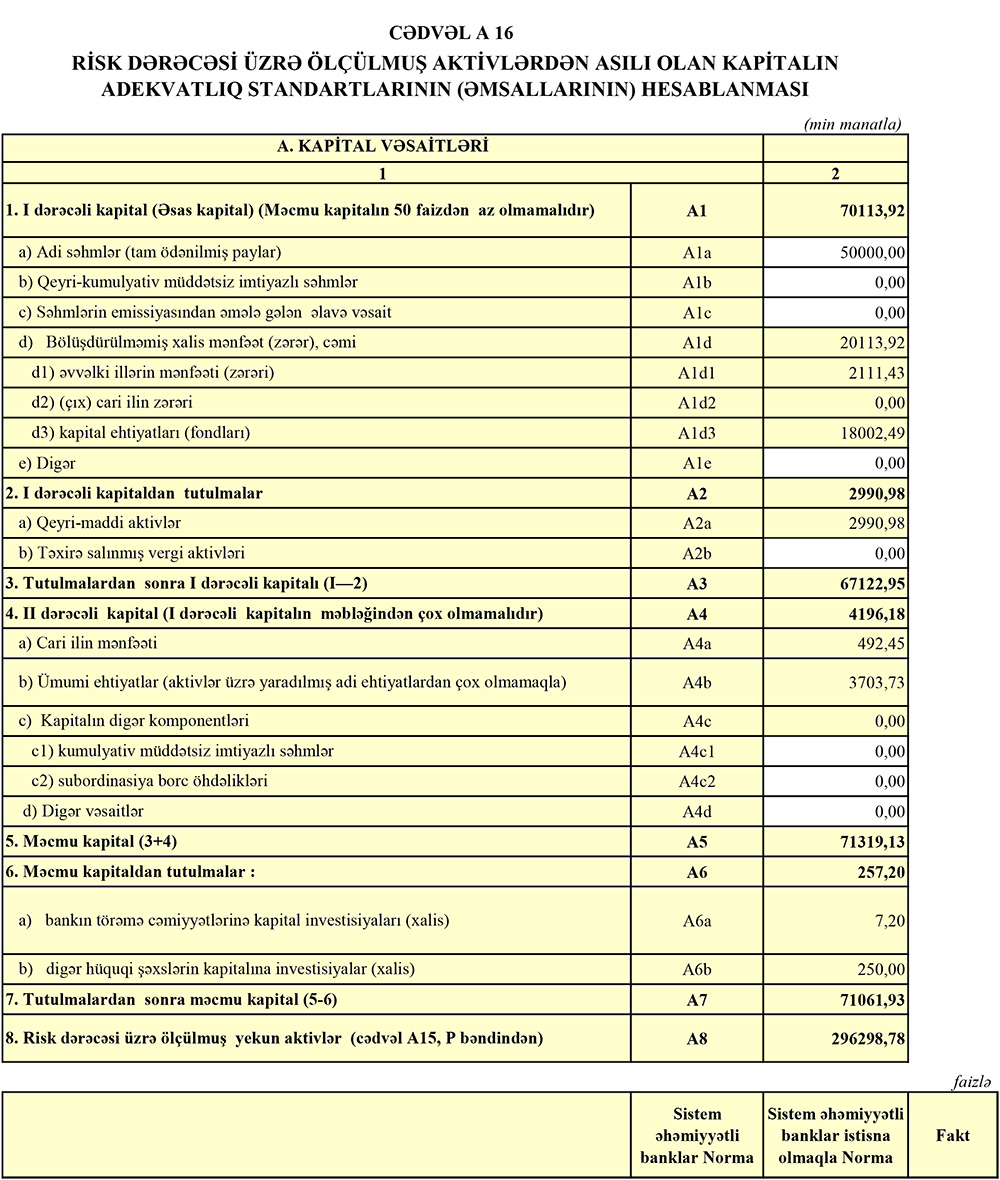İlk rübdə Bankda cəmi depozitlər isə 151 milyon 868 min manatdan 181 milyon 242 min manata yüksəlib (29 milyon 374 min manat artım).
