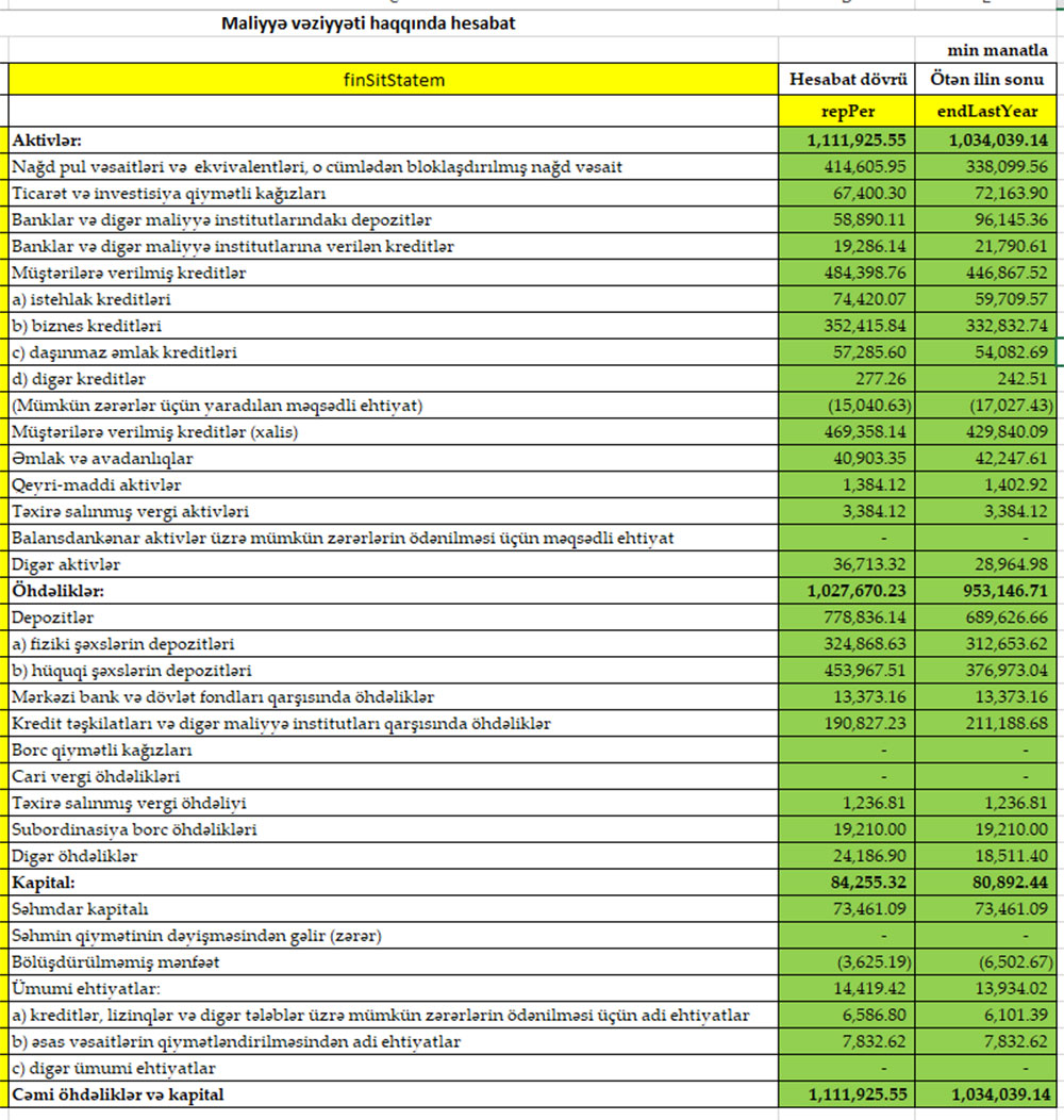 BANK BÖYÜYÜB, MÜŞTƏRİLƏRƏ VERİLMİŞ KREDİTLƏR ARTIB