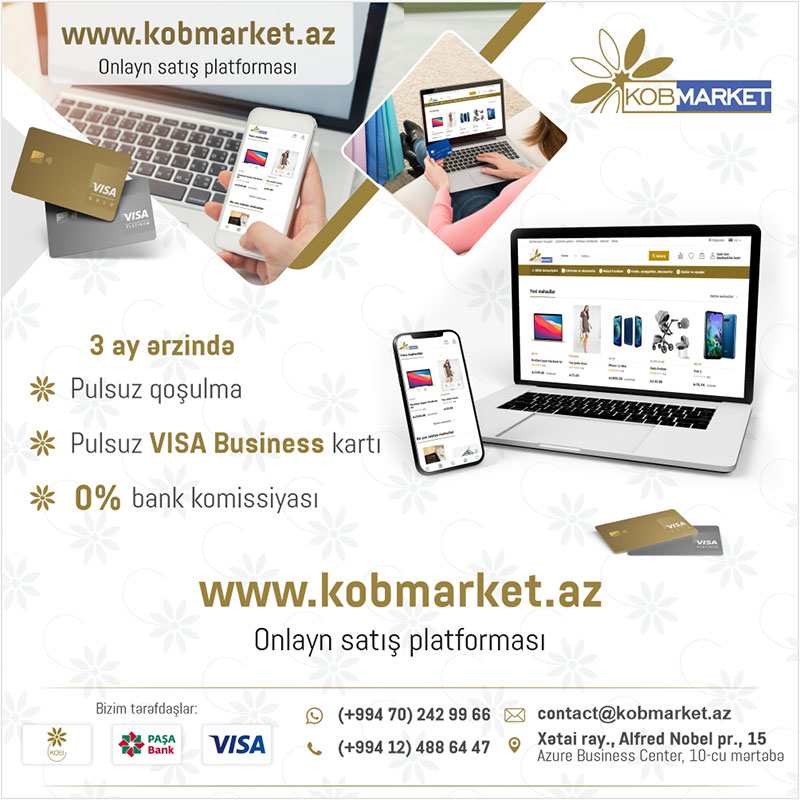Artıq hər bir sahibkar Kobmarket.az-da qeydiyyatdan keçərək, mallarını və xidmətlərini özünün onlayn mağazası vasitəsilə satmağa başlaya bilər.