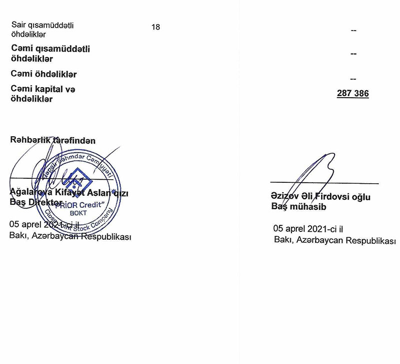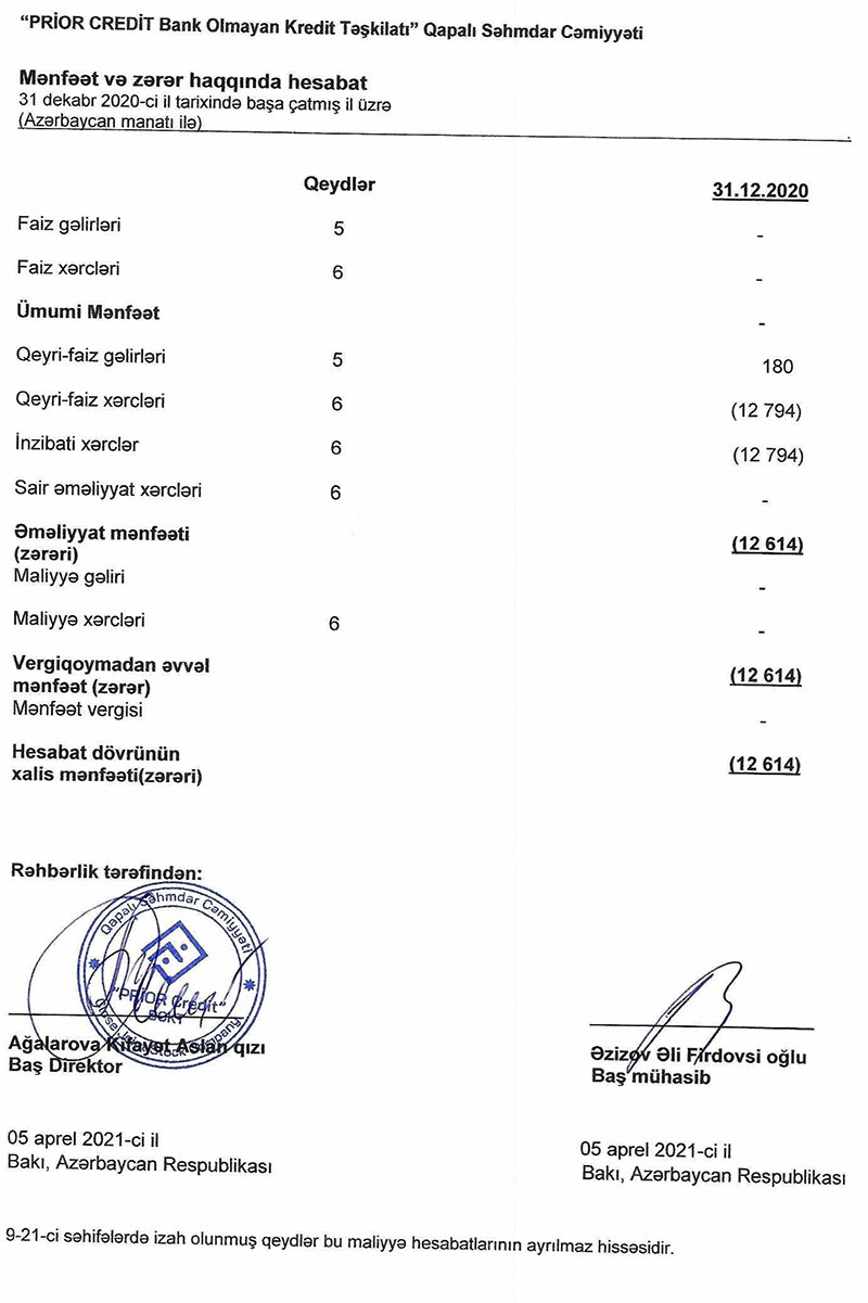 Ötən ilin sentyabr ayında lisenziya almış "Prior Credit BOKT" QSC 2020-ci il üzrə maliyyə hesabatlarını dərc edib.