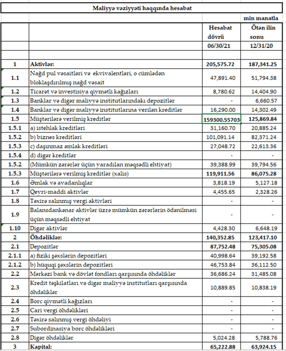 Ötən ilin sonu ilə müqayisədə “Bank VTB Azərbaycan”da depozitlər 12 milyon 447 min manat aratraq 30 iyun 2021-ci il tarixində 87 milyon 752 min manata çatıb.