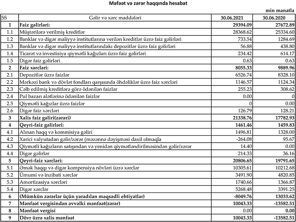 Yeni strategiyanın nəticələri müsbətdir. İlin sonunadək daha böyük nəticələr proqnozlaşdırılır.“Yelo Bank” ASC 2021-ci ilin 1-ci yarısını 10 milyon 43 min manat xalis mənfəət ilə başa vurub. Halbuki, Bank ötən ilin eyni dövründə 13 milyon 583 min manat xalis zərər etmişdi. Mənfəətin 80%-i ehtiyat fondundan azad olmuş vəsaitin hesabınadır. Ehtiyat fondundan vəsaitin blokdan çıxması kredit riskinin azaldığına işarədir. Eyni zamanda, Yelo Bankın kredit portfeli böyüyüb, gəlirləri artıb.
