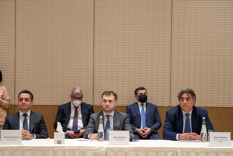 Görüşdə Qarabağ Dirçəliş Fondunun Müşahidə Şurasının sədri, Azərbaycan Respublikasının İqtisadiyyat naziri Mikayıl Cabbarov, Müşahidə Şurasının üzvü, Ekologiya və Təbii Sərvətlər naziri Muxtar Babayev, Azərbaycan Respublikası Mərkəzi Bankının sədri Elman Rüstəmov, Fondun İdarə Heyətinin sədri Rəhman Hacıyev, Azərbaycan Banklar Assosiasiyasının prezidenti Zakir Nuriyev, həmçinin ABA-nın Rəyasət Heyətinin üzvləri və bank sektorunun nümayəndələri iştirak edib.