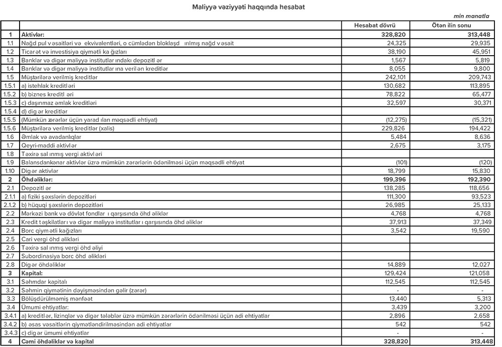 Daha bir bank maliyyə vəziyyətini açıqladı – 8 MİLYONDAN ÇOX XALİS QAZANCI VAR