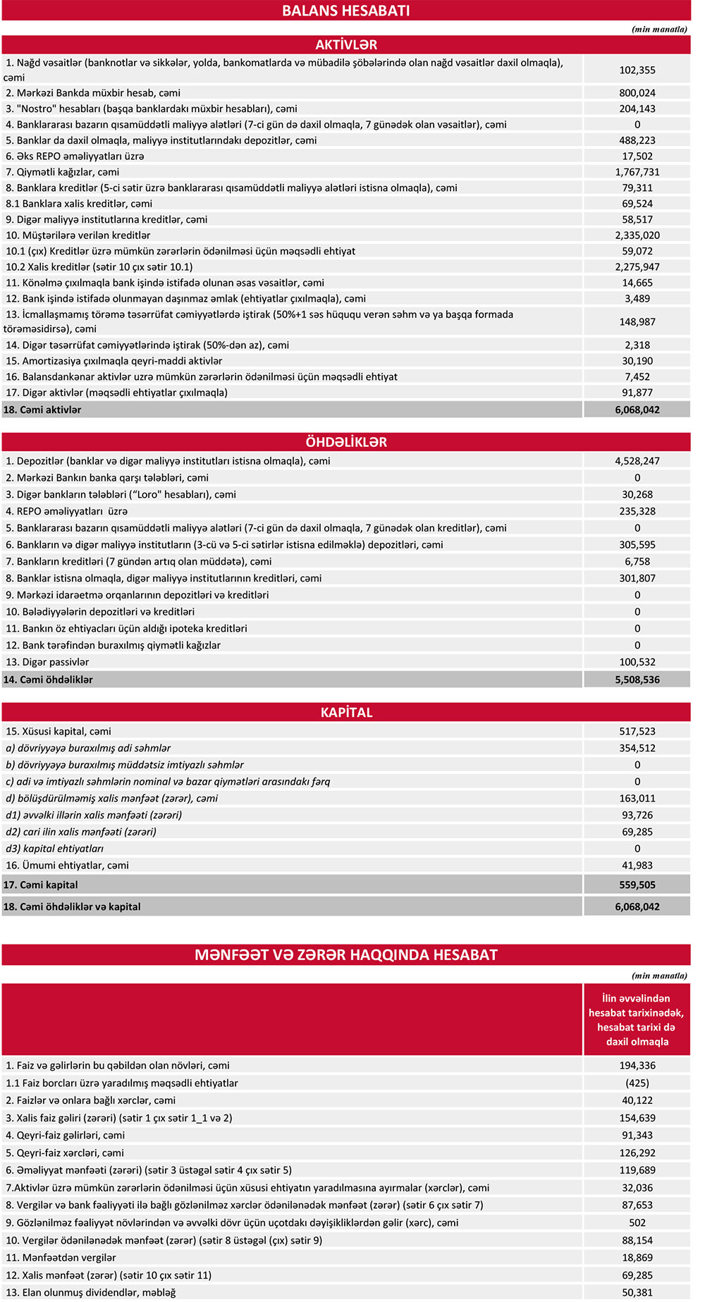 Azərbaycanın ən böyük özəl bankından 70 milyon manata yaxın xalis mənfəət