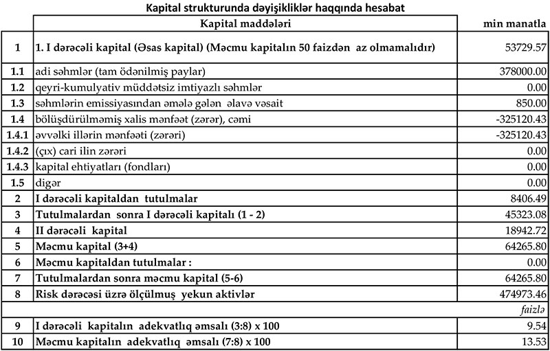 30 Sentyabr 2021-ci il tarixində "Yelo Bank"64 milyon 266 min manat məcmu kapitala malik olub. Ötən ilin sonunda Bankın məcmu kapitalı 53 milyon 805 min manat təşkil etmişdi.