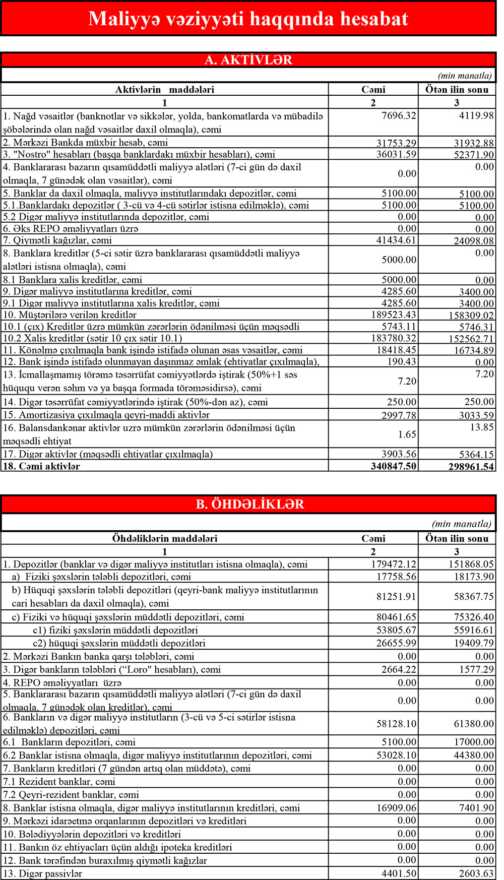 Xatırladaq ki, 2020-ci ilin 9 ayında “Ziraat Bank Azərbaycan”ın cəmi əməliyyat gəlirləri (faiz və qeyri-faiz xərcləri) 17 milyon 342 min manat, cəmi əməliyyat xərcləri (faiz və qeyri-faiz xərcləri) 11 milyon 660 min manat, faiz borcları üzrə yaradılmış məqsədli ehtiyatlar 1 milyon 207 min manat, gəlirlər xərcləri üstələdiyindən əməliyyat mənfəəti 4 milyon 475 min manat təşkil etmişdi. Bank əməliyyat mənfəətindən 2 milyon 232 min manat aktivlər üzrə mümkün zərərlərin ödənilməsi üçün xüsusi ehtiyatın yaradılmasına ayırmış, 303 min manat mənfəət vergisi ödəmişdi. Nəticədə, "Ziraat Bank Azərbaycan" ASC həmin dövrü 1 milyon 940 min manat xalis mənfəət ilə bağlamışdı.