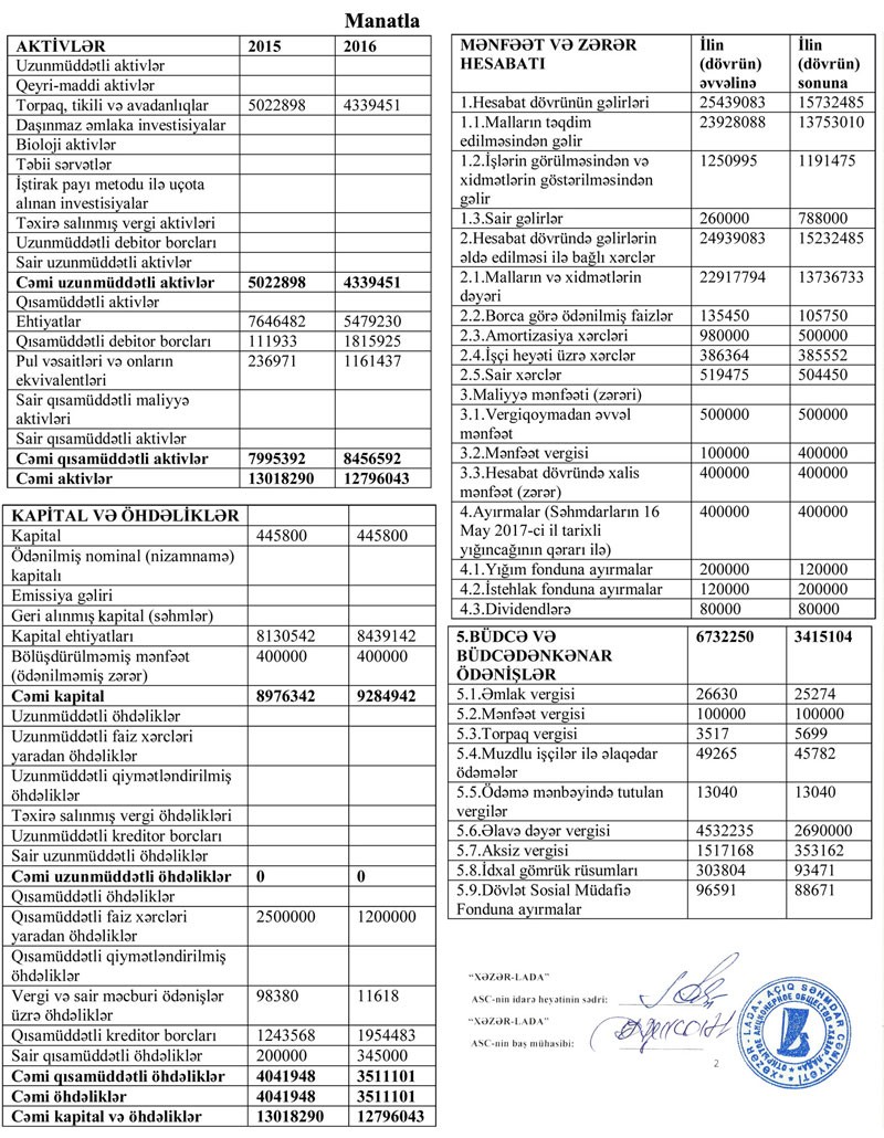 Ötən il “Xəzər Lada”nın cəmi aktivləri 13 milyon 18 min manatdan 12 milyon 796 min manata geriləyib.