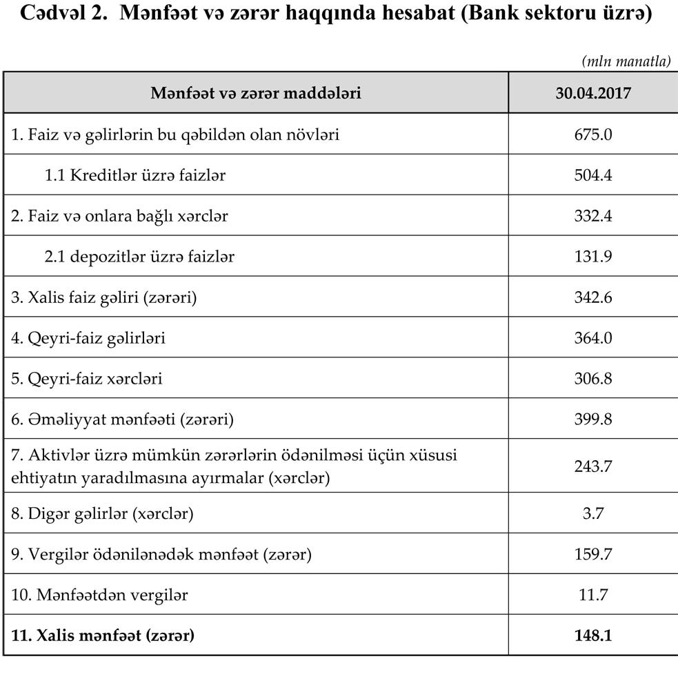 Bank sektorunun cəmi xalis mənfəəti 148 milyon manatı ötüb