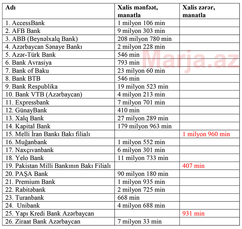 23 bank mənfəət, 3 bank zərər açıqladı - SİYAHI, YENİLƏNİB