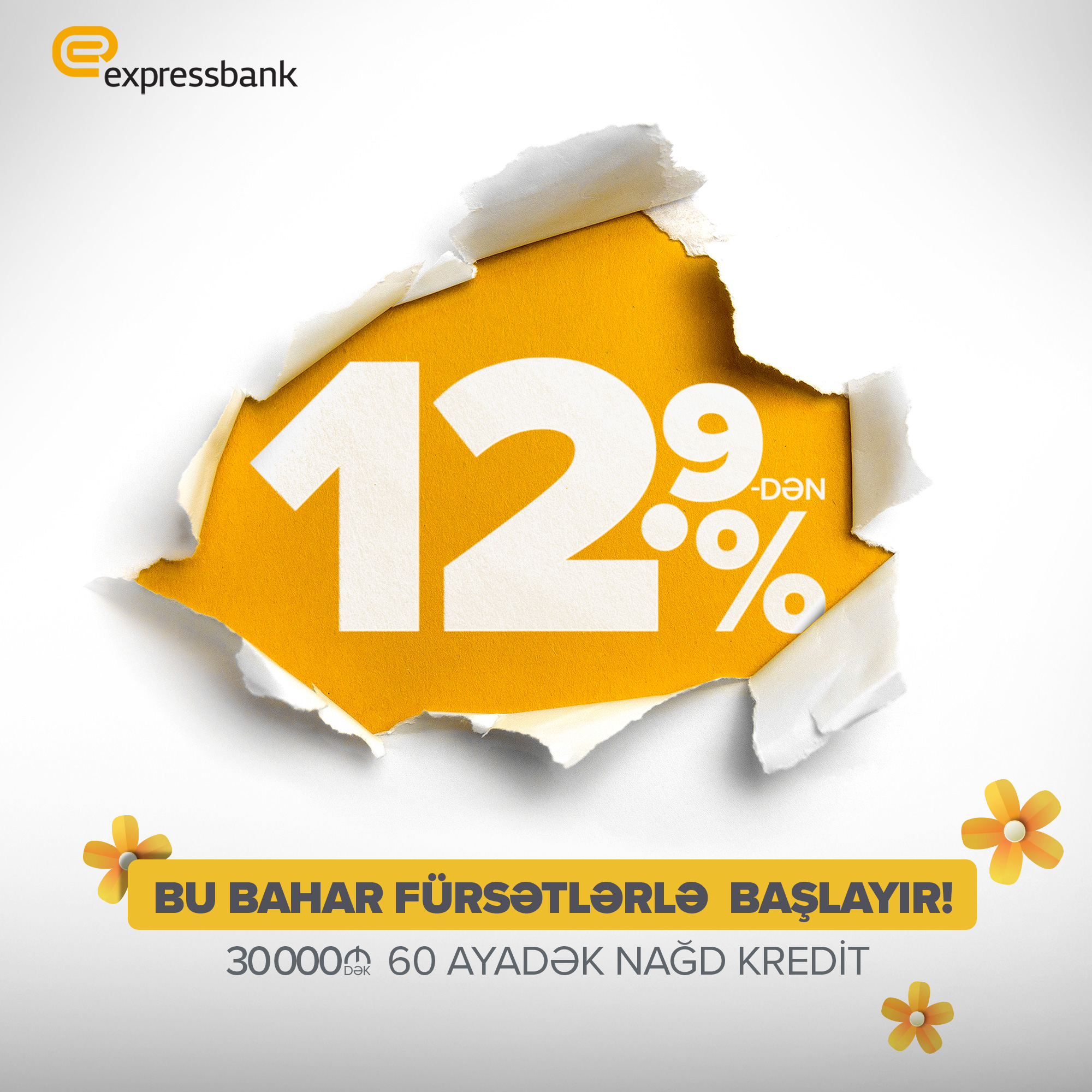 “Expresbank” nağd pul kreditini 30 min manatadək, 60 ayadək ödəmək imkanı ilə təklif edir.
